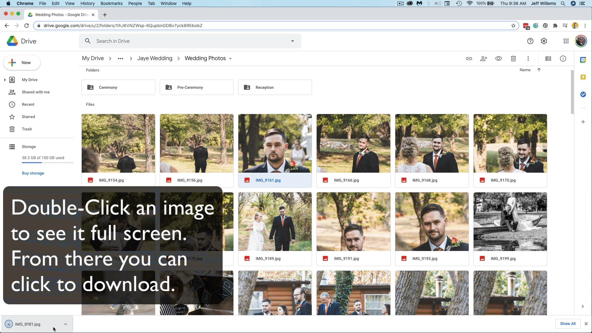 Once you're in the folder containing all the images. You can double-click on an image to bring it up in a larger view and scroll through the gallery. To download an image there are two ways to do it, see the gifs below for instructions.